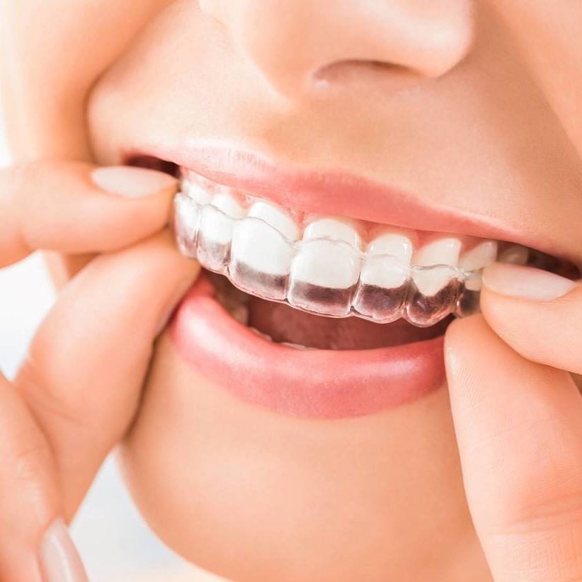 治療の説明:透明なマウスピース型の装置で行う矯正治療です。